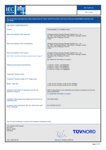 We’re proud to announce that Wolong Energy Storage has successfully obtained IEC certification for our 5MWh energy storage product—covering both battery modules and battery clusters!